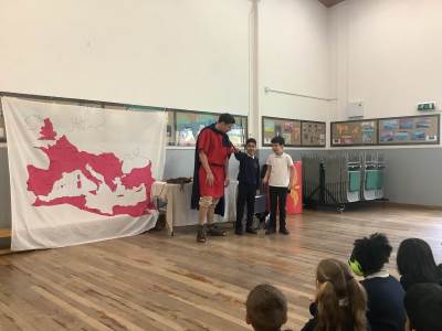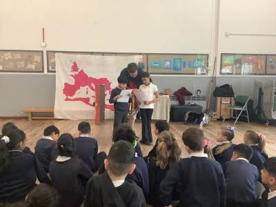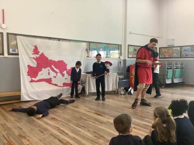 Year 3 launched their new History unit, Emperors and Empires, with an unforgettable Roman Workshop last Thursday. The children explored the legendary founding of Rome and brought history to life through engaging drama, reenacting key moments from Roman history. They had the unique opportunity to handle replica ancient artefacts and even try on Roman armour, helping them to better understand what life was like for people living in the Roman Empire. They also learnt and practised Latin phrases that would have been used in Ancient Rome. The day was filled with fun as they played traditional games that Roman children might have enjoyed, including balancing a small item on the back of their hand and taking part in a strength challenge. A highlight for many was taking part in a mock battle, where they worked together to form a testudo (tortoise formation) using their shields. The workshop was led by Ancient Visitor, whose engaging and knowledgeable approach captivated the children throughout the day. It was a fantastic learning experience and the children came away with a deeper understanding and enthusiasm for Roman history.
